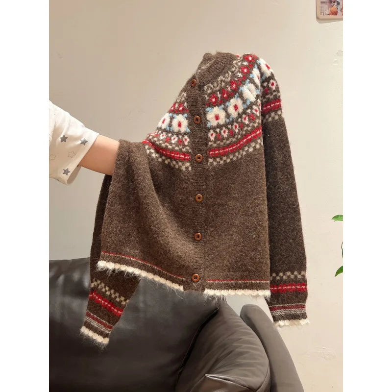 Sarah - Retro Knitted Sweater round Neck Cardigan Winter